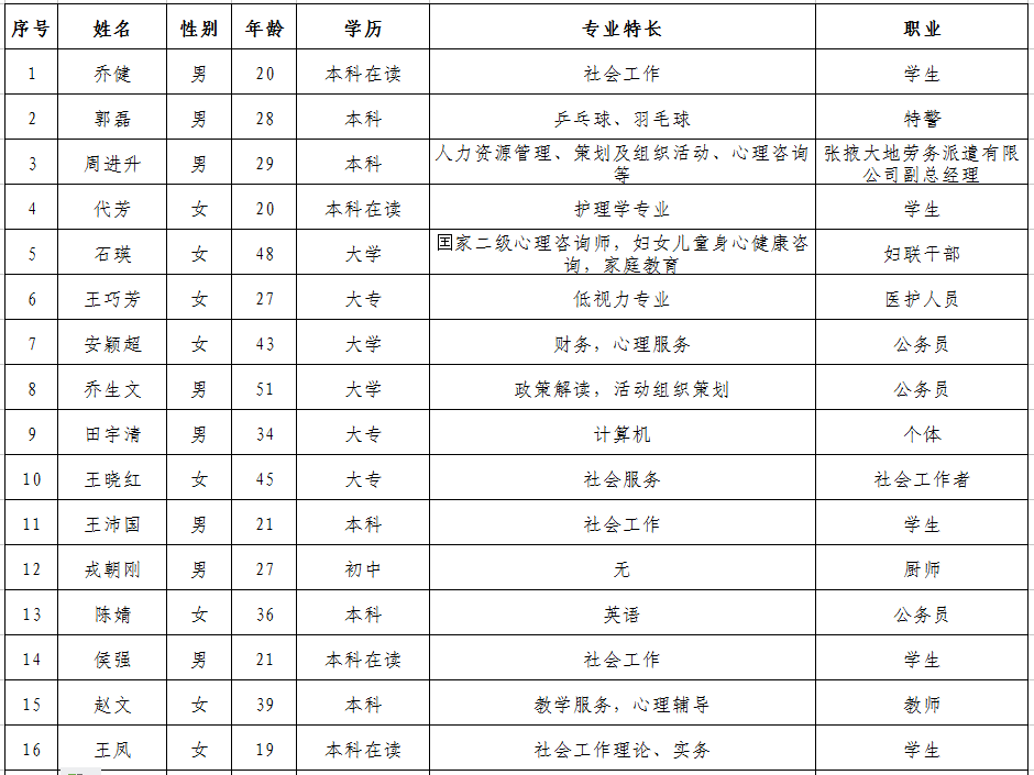 張掖市慈善協(xié)會第一批志愿者名單