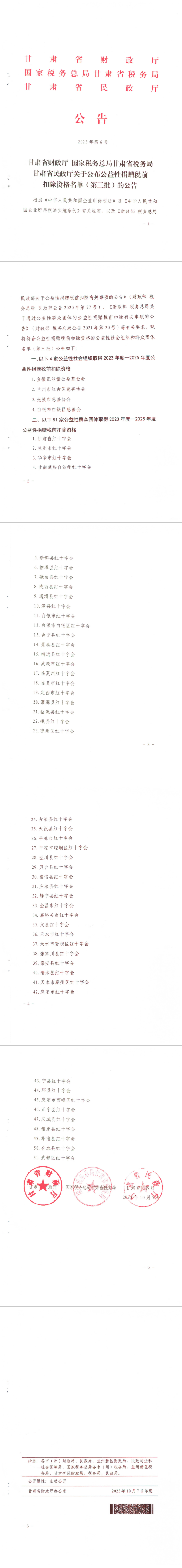 轉載|甘肅省財政廳 國家稅務總局甘肅省稅務局甘肅省民政廳關于公布公益性捐贈稅前扣除資格名單(第三批)的公告